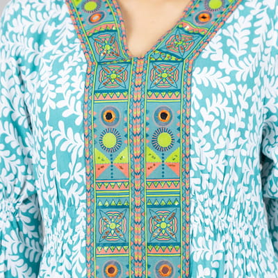 This floral embroidered kurti is a timeless addition to your ethnic wardrobe, perfect for festive occasions.
