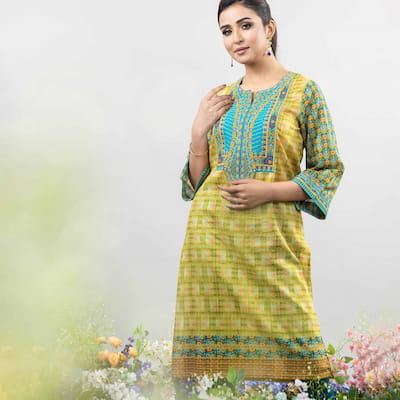 Stay stylish with this trendy long slit rayon kurti, designed for comfort and a fashionable look.