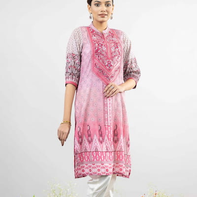 Stay trendy with this straight-cut printed kurti, designed for comfort and style.